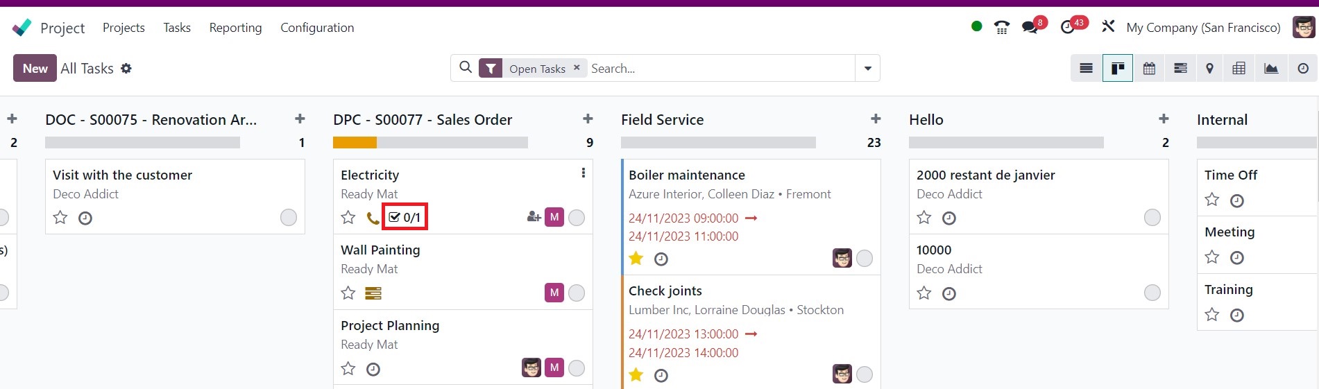 Varat skatīt apakšuzdevumu statusu tieši uzdevuma kartītē.